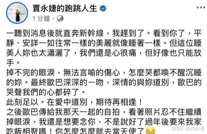 消息一出,整个娱乐圈都沉浸在悲痛之中。小S通过经纪人发声证实了这一噩耗,她的声音里满是哀伤,仿佛能听出她内心的崩溃。